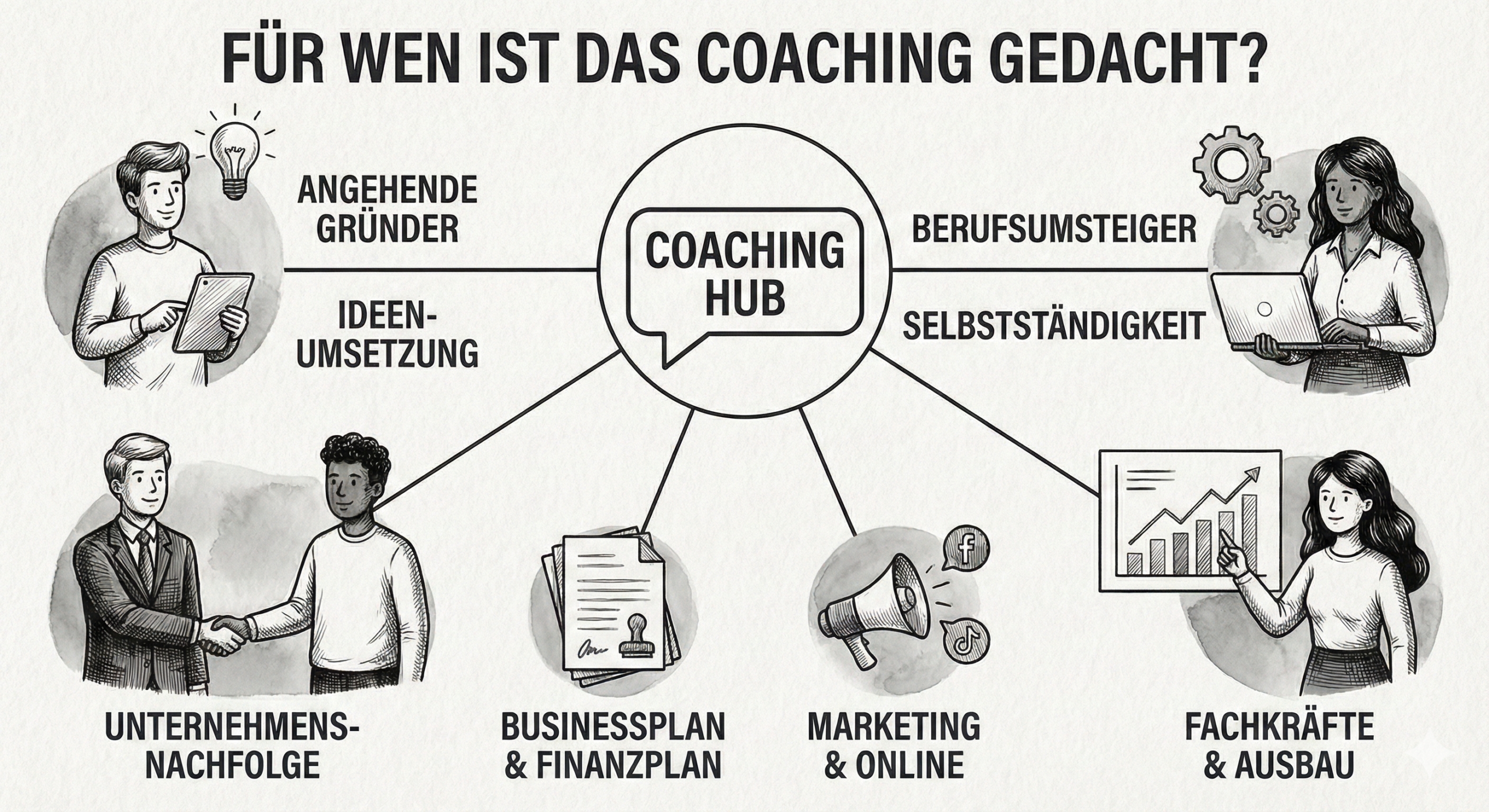 Gründercoaching ist eine individuelle, praxisorientierte Begleitung für Menschen, die den Schritt in die Selbstständigkeit planen oder ihr bestehendes Vorhaben professionalisieren möchten. Im Coaching werden Geschäftsideen strukturiert, Geschäftsmodelle entwickelt, finanzielle und rechtliche Grundlagen geklärt und ein tragfähiger Businessplan erstellt. Das Ziel ist, Gründerinnen und Gründer sicher durch alle Phasen der Vorbereitung zu führen, typische Fehler zu vermeiden und eine stabile Basis für langfristigen Erfolg zu schaffen. Gründercoaching bietet Orientierung, Fachwissen und persönliche Unterstützung – damit der Start ins eigene Unternehmen klar, sicher und realistisch gelingt.